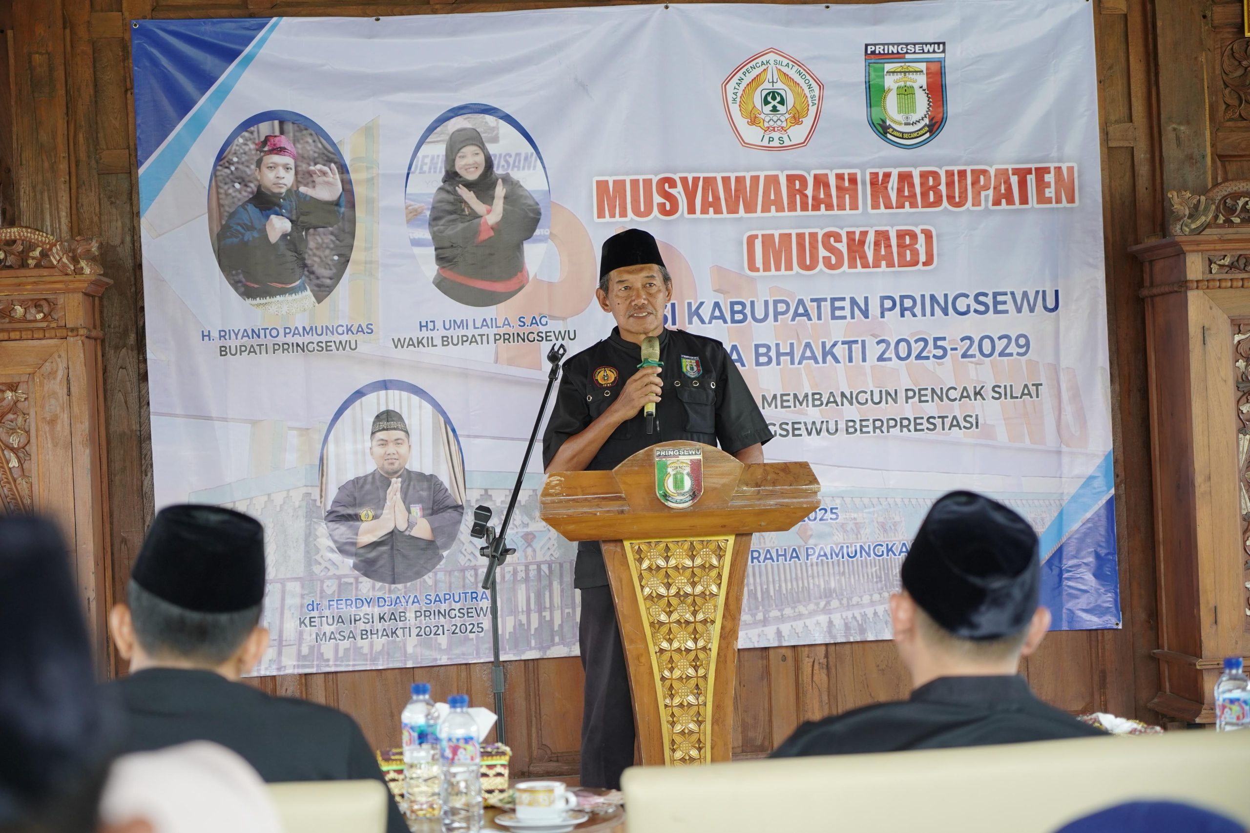 PRINGSEWU I shterate.or.id – Musyawarah Kabupaten (Muskab) Ikatan Pencak Silat Indonesia (IPSI) Kabupaten Pringsewu tahun 2025 hasilkan Kangmas Dicky Yoza Saputra terpilih secara aklamasi sebagai ketua IPSI Kabupaten Pringsewu masa bakti 2025-2029. Adapun Muscab IPSI digelar di Graha Pamungkas, Kabupaten Pringsewu, Sabtu (24/5/2025).