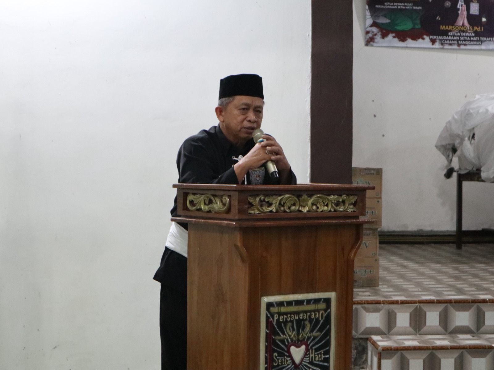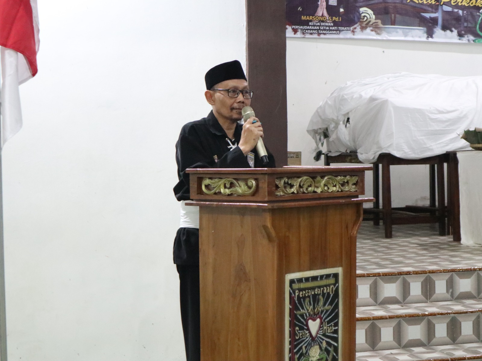 Dalam sambutannya, Agus Suranto Wakil Bupati Tanggamus Menyampaikan Pada Keluarga besar Setia Hati Terate yang berbahagia saya ucapkan selamat kepada adik-adik yang nanti akan di-SAH-kan menjadi Warga Baru Tingkat Pertama, Harapan kita, bahwa calon warga baru yang kita Wisuda/Sahkan malam ini, akan mendapatkan ridho dan karunia dari Allah SWT. Dibersihkan jiwa-raganya. Sehingga menjadi orang yang berkepribadian Setia Hati. Yakni, seorang yang berbudi luhur tahu benar dan salah, beriman dan bertaqwa kepada Tuhan Yang Maha Esa, mampu menempatkan rasa keadilan dan kearifan dalam pergaulan di tengah masyarakat, serta selalu terbuka berikan maaf terhadap sesama.
