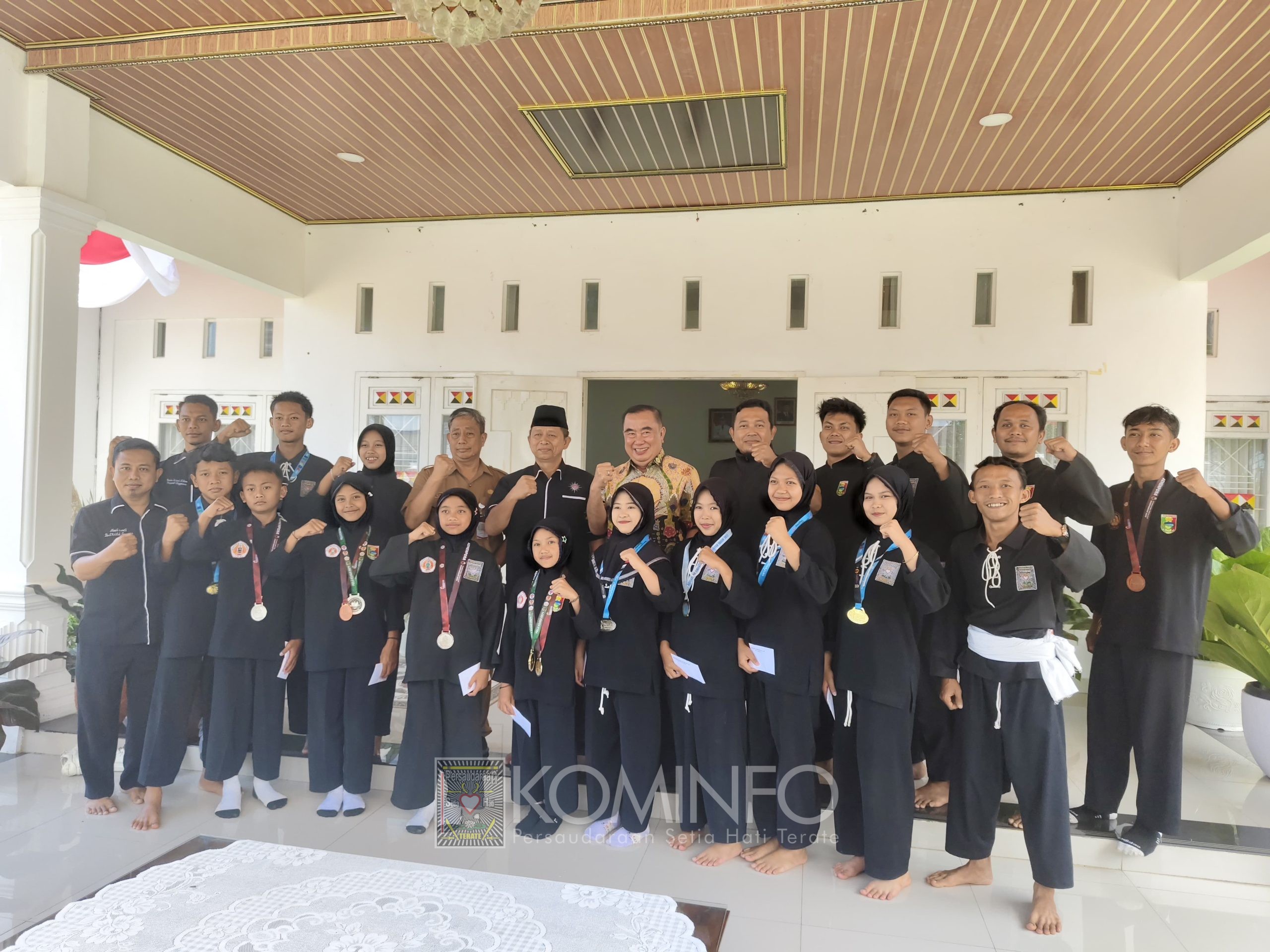 Foto : Bersama Bupati H. Moh. Saleh Asnawi, Atlit PSHT Cabang Tanggamus – Pusat Madiun Gelar Audiensi, Senin (01/9).